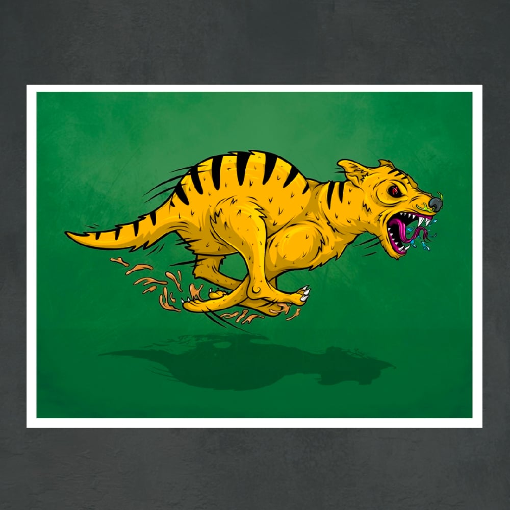 Limited edition 'hide and seek' thylacine giclee print.