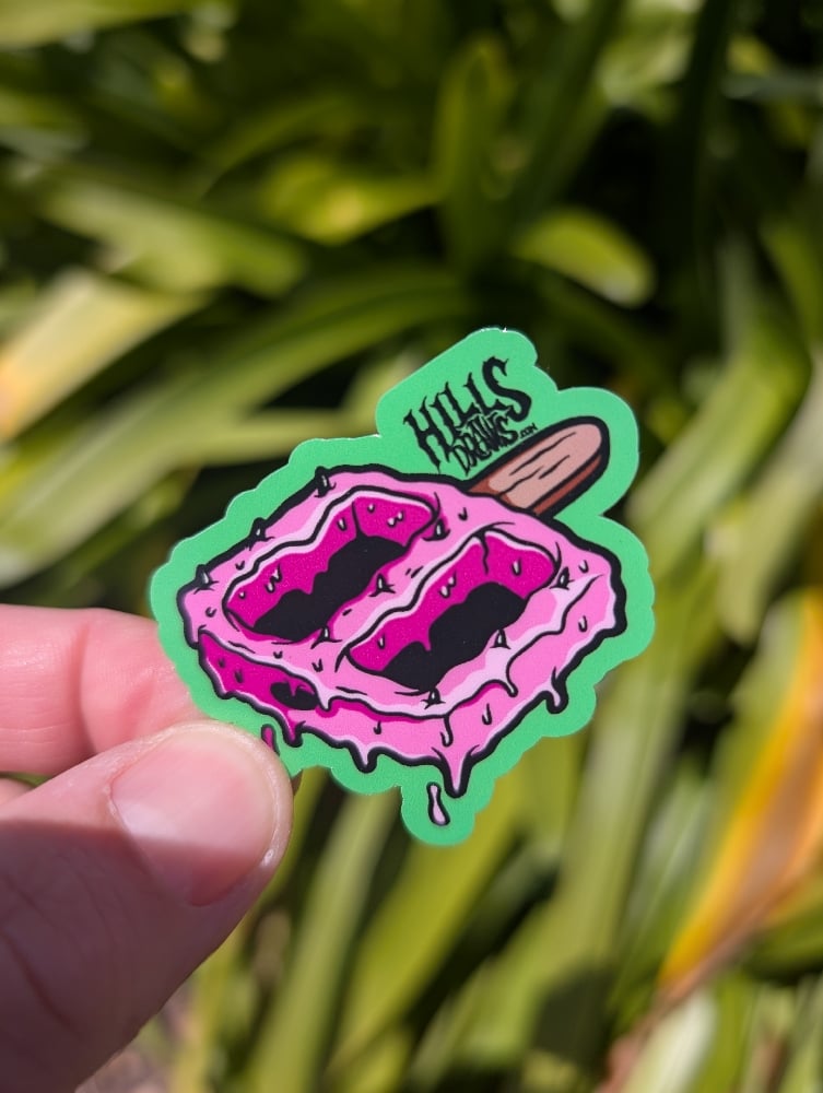 "Lick ya pedals" ice cream pedal die cut vinyl sticker - commissioned illustration created for sea otter au.